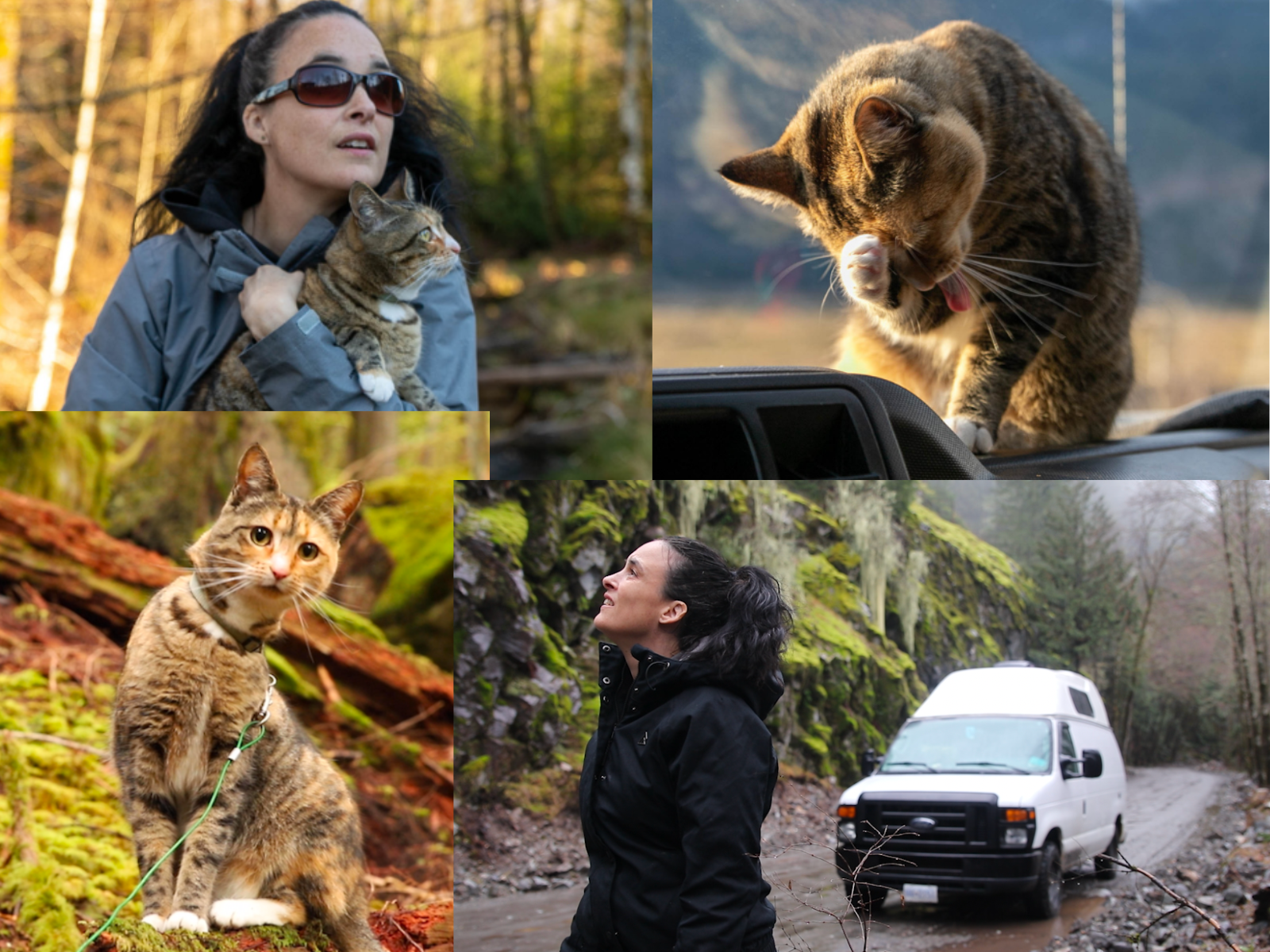 In the beginning, it wasn’t so glamourous. My cat and I were sleeping on a mattress on the floor of the van. We both had to adjust. Now, my cat loves this lifestyle as much as I do; she looks out of the window while I’m driving and she loves exploring new places.